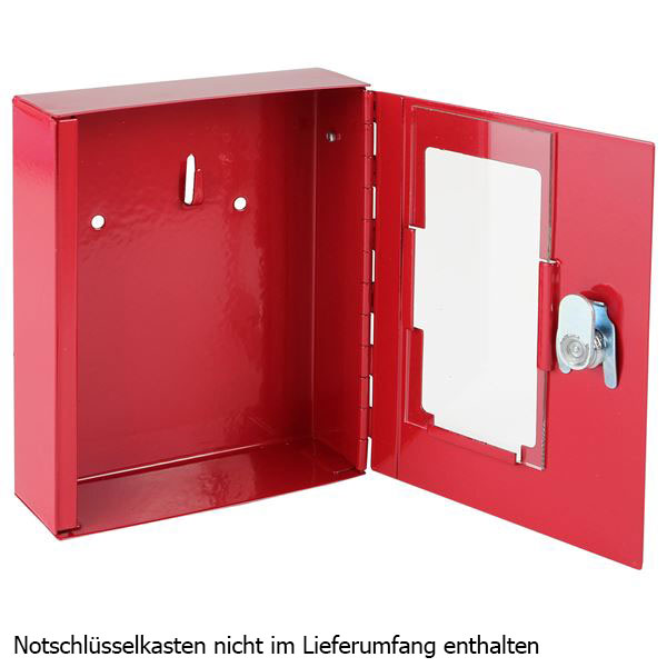 Notschlüsselkasten zur Aufbewahrung von NotschlüsselnGröße (B x T): 12 x 6,2 cmSchlossart: Zylinderschloss mit 2 Schlüsseln;Farbe: Feuerrot RAL 3001