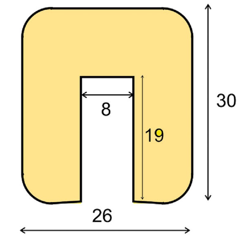 Profilschutz aus PU-Schaum, selbstklebend Ausführung: Viereck, Typ G, Farbe: gelb/schwarz Innenmaß: 0,8 x 1,9 cm