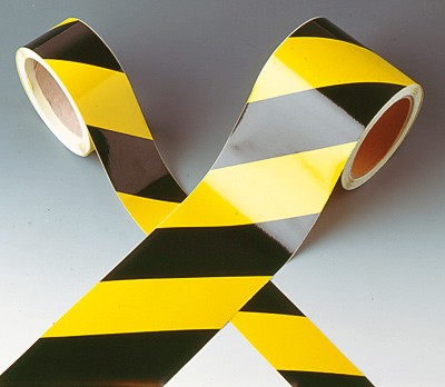 Weich-PVC-Folie, gelb/schwarz, linksweisend, selbstklebend auf Rolle. Zur dauerhaften Kennzeichnung von Gefahrstellen.