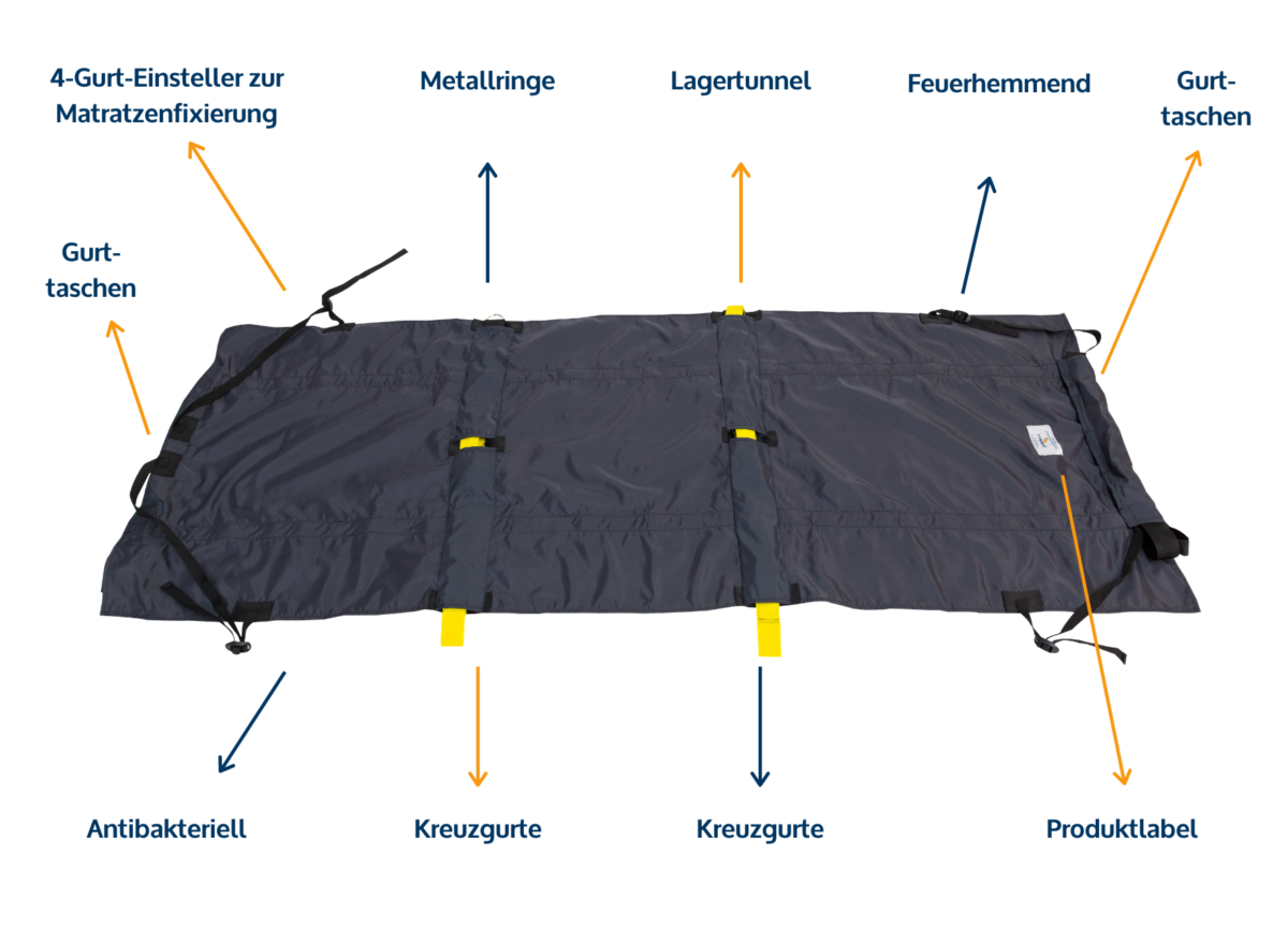 Zur dauerhaften Installation in Kranken- und Pflegebetten unter der Matratze. Es dient der schnellen Evakuierung bettlägeriger Patienten, auch über Treppen.Passend für folgende Matratzen: 80-90 cm breit | maximale Länge: 210 cmMaße (verpackt): 40,00 x 30,00 cmGewichtskapazität: 120-150 kg, abhängig vom Körperumfang40°C waschbar; antibakteriell (Sanitized TH 24-27); feuerfeste Materialien