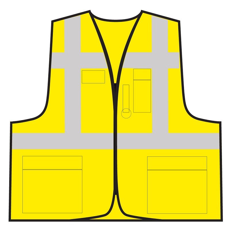 MulitfunktionswesteInkl. Rückendruck Koordinator RettungskräfteZwei 5 cm breite Reflexstreifen um den Körper und Schulter.Reißverschluss2 Taschen mit Klettverschluss-Klappenin Brusthöhe: Ausweistasche, kleine Tasche, Stifthalter, SchlüsselringFarbe: gelb (entspricht der EN ISO 20471:2013)