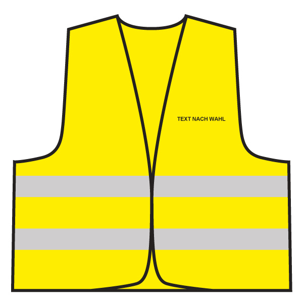 Warnweste nach EN ISO 20471Inkl. Individuellem Rücken- und BrustaufdruckZwei 5 cm breite Reflexstreifen um den Körper, Verschluss durch Klettverschluss Farbe: gelb