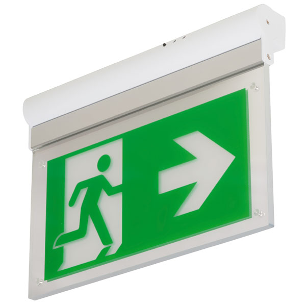 LED-RettungszeichenleuchteEinzelbatterieinkl. 4 PiktogrammeWand- oder DeckenmontageErkennungsweite 26 mDauer-/BereitschaftsschaltungBetriebsdauer 3h