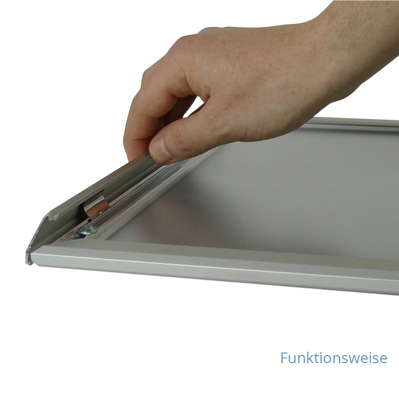 Farbe: silbermatt. Scheibe: Antireflex-Schutzfolie. Ecken auf Gehrung. Aufbauhöhe: 10mm. Profilbreite: 20mm. Verdeckte Befestigung. Inkl. Montagematerial.