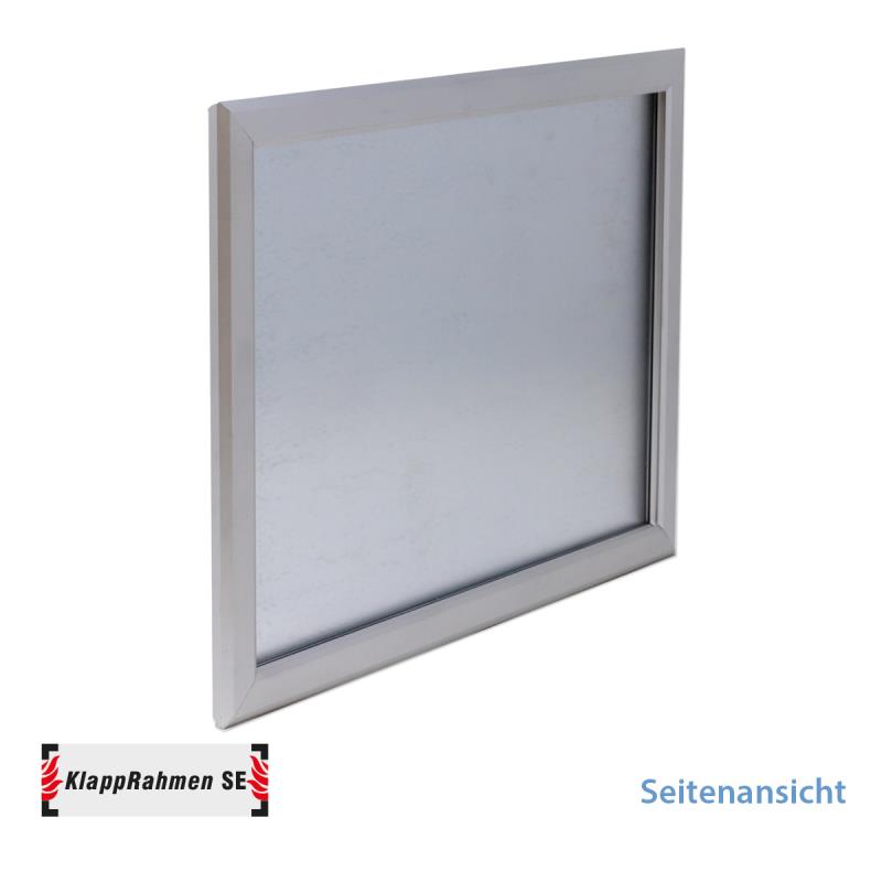 Schwerentflammbar nach DIN 4102-B1. Farbe: silbermatt. Scheibe: Antireflex-Schutzfolie.Rückwand: Metall. Ecken auf Gehrung.Aufbauhöhe: 10mm. Profilbreite: 20mm.Verdeckte Befestigung. Inkl. Montagematerial.