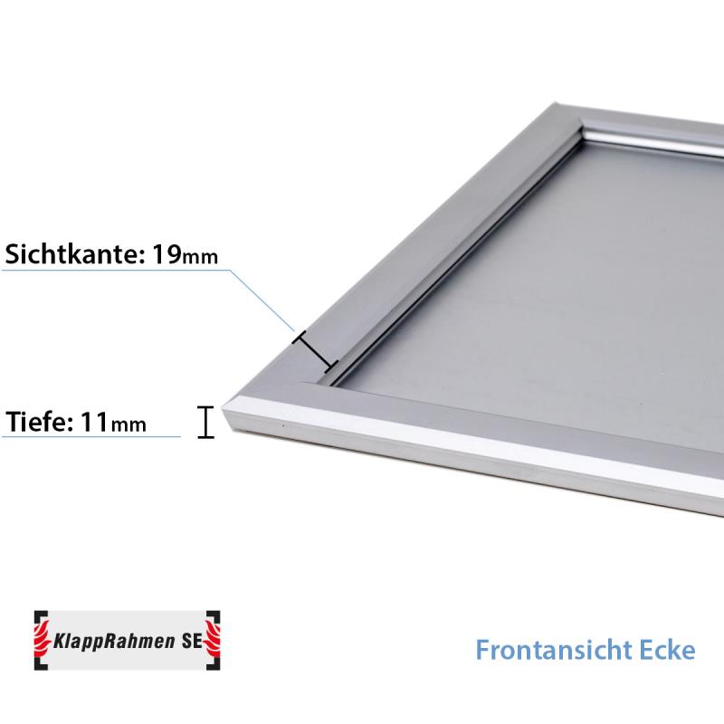 Schwerentflammbar nach DIN 4102-B1. Farbe: silbermatt. Scheibe: Antireflex-Schutzfolie.Rückwand: Metall. Ecken auf Gehrung.Aufbauhöhe: 10mm. Profilbreite: 20mm.Verdeckte Befestigung. Inkl. Montagematerial.