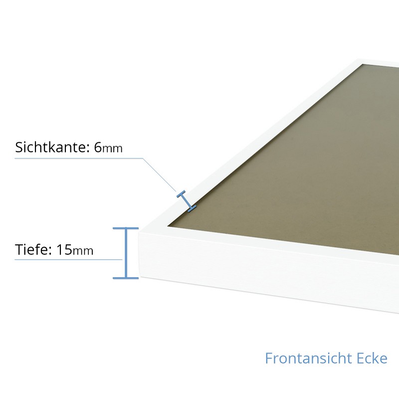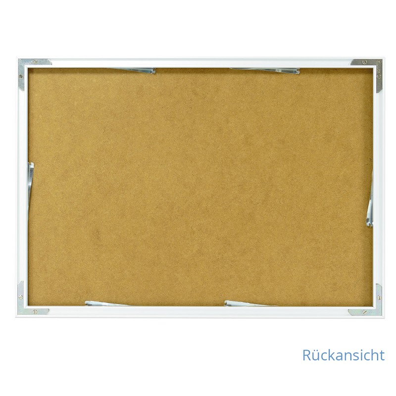 Farbe: weiß, Scheibe: Acrylglas entspiegelt. Rückwand: Hartfaserplatte. Mit Befestigungsmaterial und Montageanleitung.