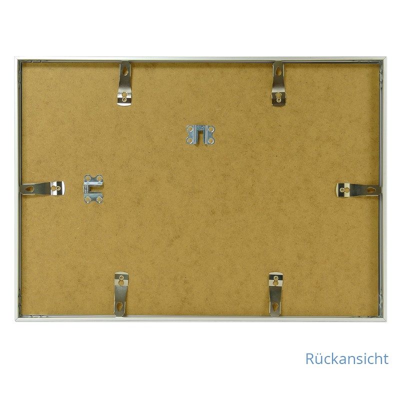 Farbe: silbermatt. Scheibe: Acrylglas entspiegelt. Profil: Aluminium, Rückwand: Hartfaser (B2) mit Drehfedermechanismus. Aufbauhöhe: 18mm.